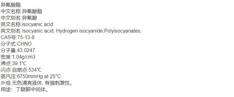 异氰酸酯 75-13-8 含量99% 有机原料 酯类 可分装 供应